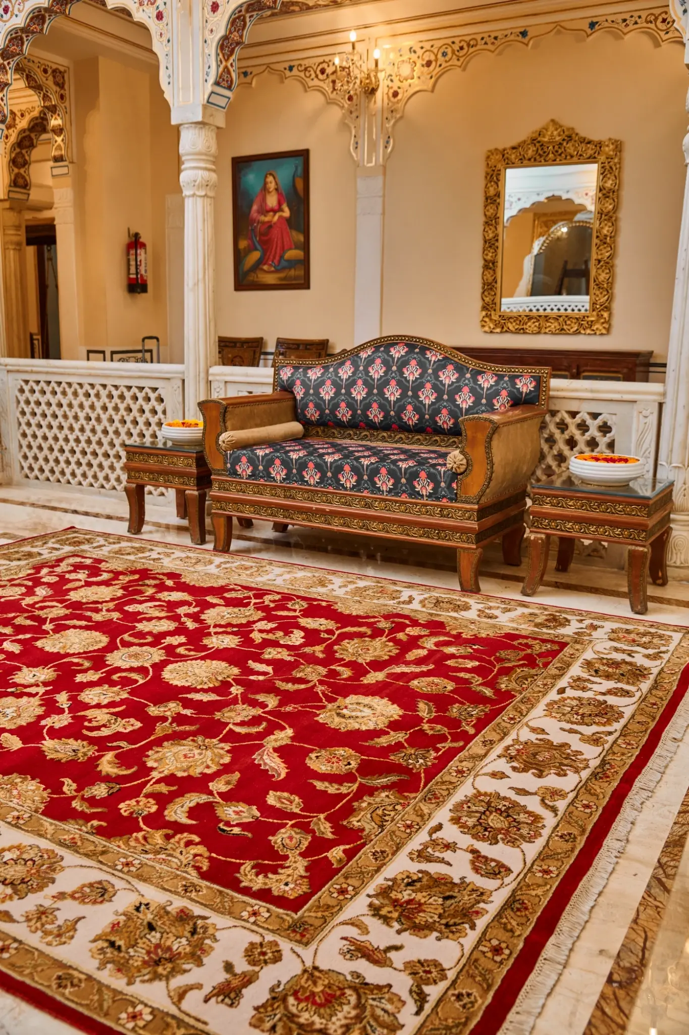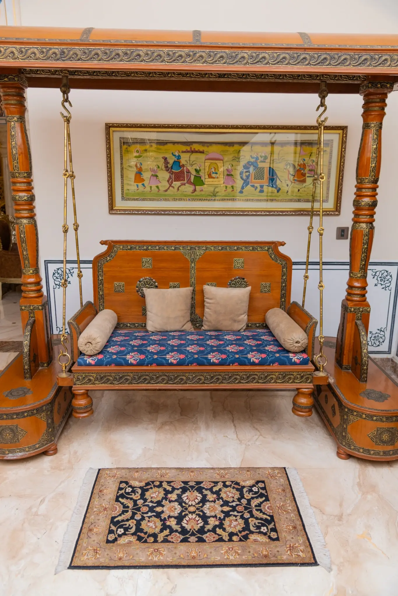 A versatile accessory perfect for complementing your carpets, serving as a Pooja mat, footrest, and more.